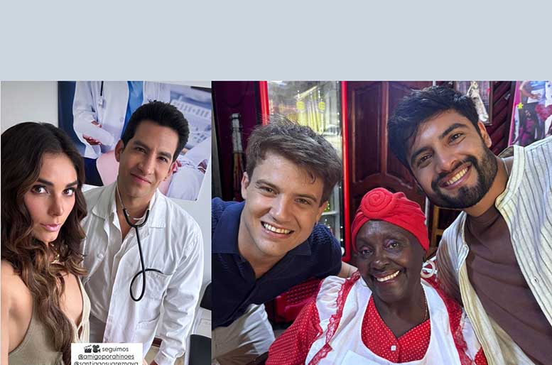Santiago Suárez y Mamainé en rodaje de “Amigo, por ahí no es”
